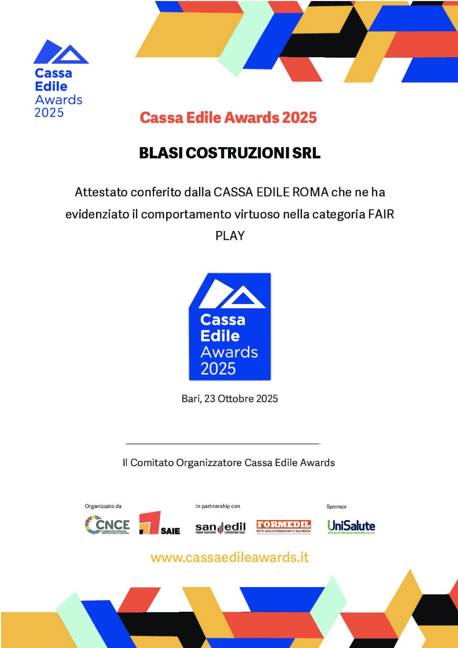 Blasi Costruzioni fondata nel 1978 come impresa artigiana nell’arco di un decennio acquisisce risorse umane e finanziarie adeguate alla trasformazione in società a responsabilità limitata. A partire dalla metà degli anni Novanta, Blasi Costruzioni ha consolidato la propria esperienza nel settore privato, registrando una crescita significativa che ha portato all’ottenimento della qualificazione SOA. Questo traguardo ha permesso alla società di operare con successo nel campo degli appalti pubblici, occupandosi di lavori edili in genere, restauro di immobili sottoposti a tutela e realizzazione di impianti tecnologici.